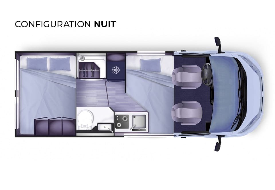 Louez le Campérêve Magellan 643, un fourgon aménagé pensé pour les voyageurs en quête de confort et de liberté. Compact et maniable, il offre une parfaite alliance entre espace, praticité et équipements haut de gamme.