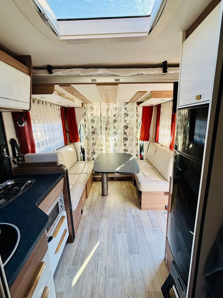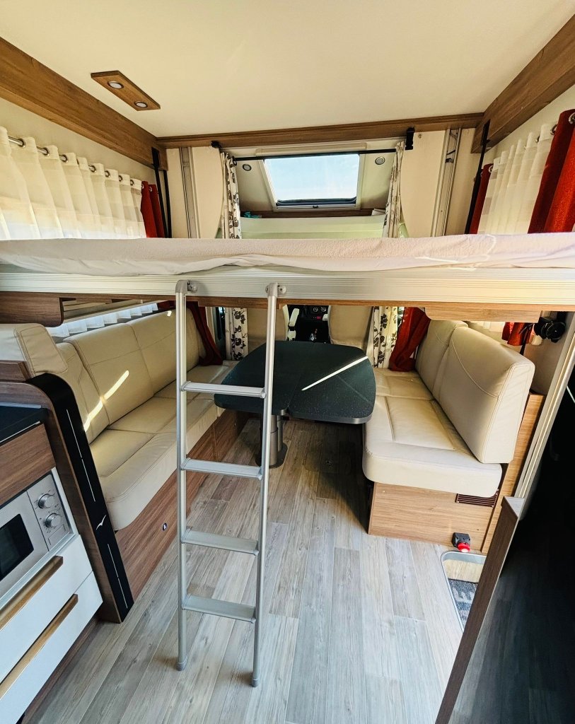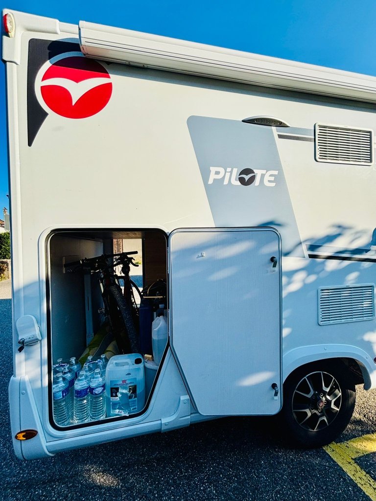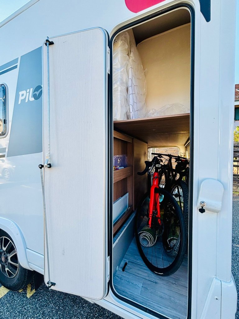 Camping-car tout équipé développant 140 cv en boîte auto, soute suffisamment grande pour accueillir des vélos.