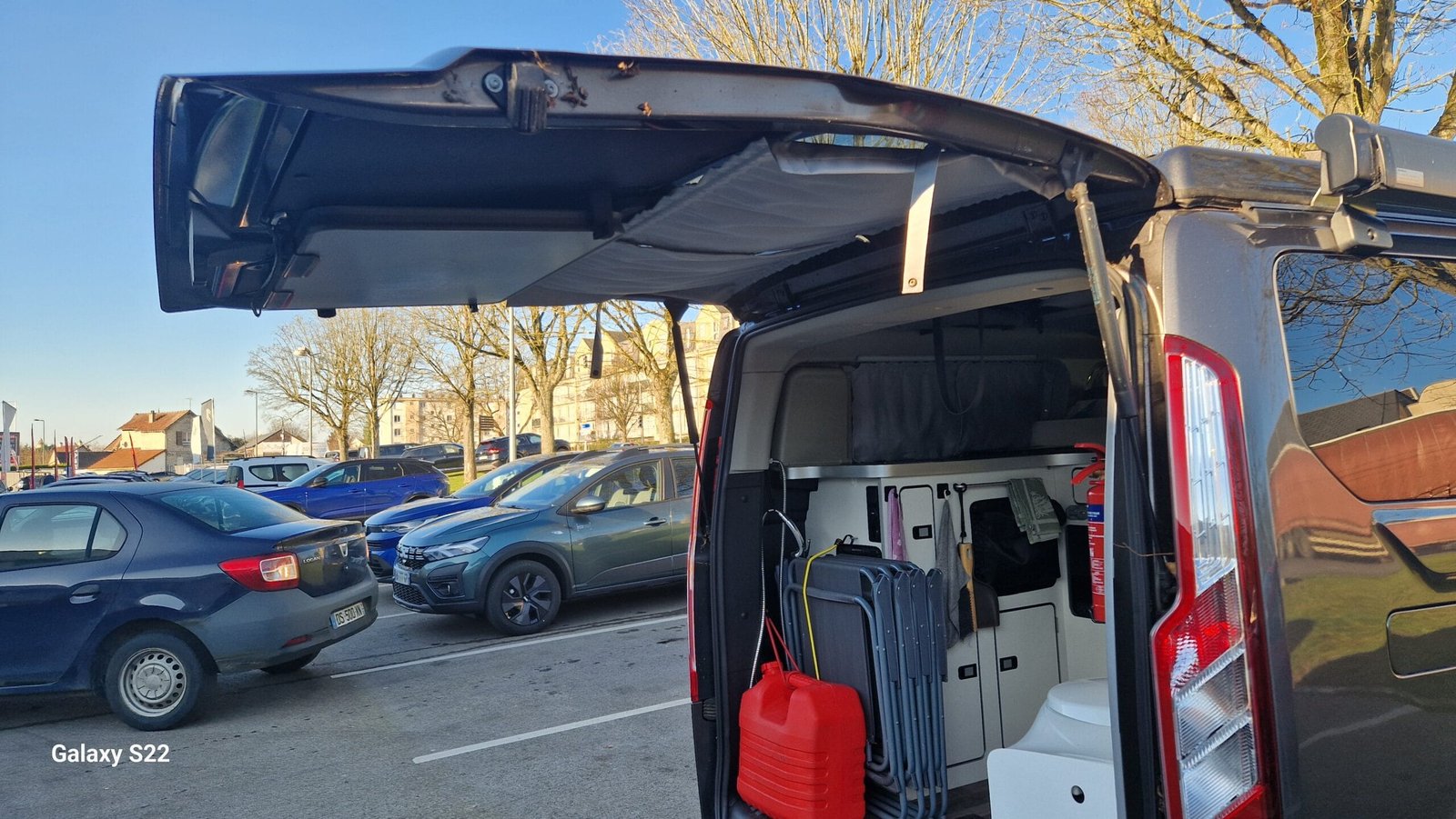 Le salon intérieur modulable comprend des sièges avant pivotants et une table à manger dépliable, créant un espace convivial pour partager vos repas ou planifier vos aventures. De plus, le van est équipé d’un store extérieur et d’un salon extérieur, vous permettant de profiter pleinement de l’extérieur lors de vos escales.